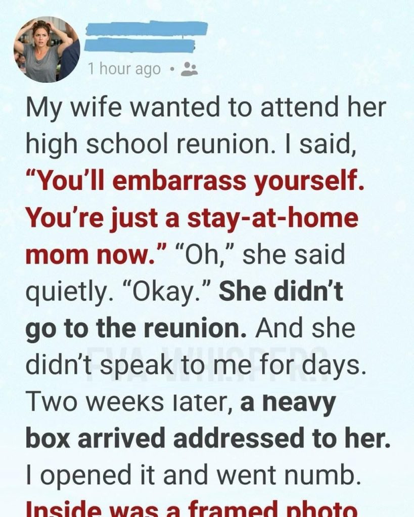 Two weeks later, a package arrived addressed to Anna. Inside was a framed photo of her graduating class, filled with handwritten notes from friends encouraging her to attend the reunion.